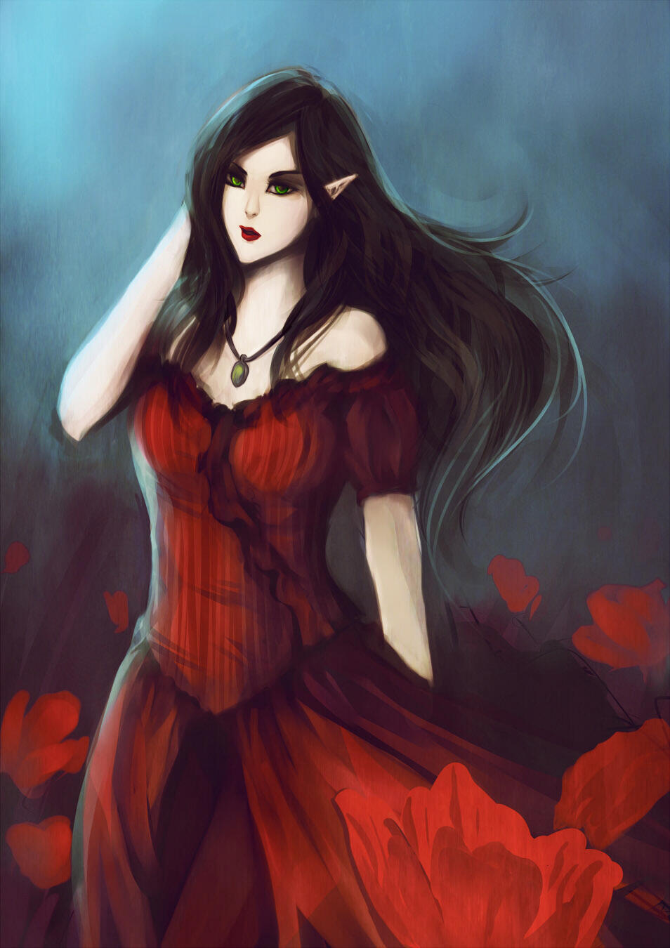 Background:Born in Quebec, Canada, Nilec was abandoned at the Church of La Visitation-de-la-Bienheureuse-Vierge-Marie in Montreal. Her parents were being hunted down and put there for her safety. They would consequently go missing days later and would never be heard from again.Peter and Linda Quele adopted Nilec, being half Elves themselves. Nilec’s childhood was normal until she showed signs of being a seer. It's at this point that her step-parents start to treat her differently. They put her on a pedestal, not only because she is a full-blooded Elf, but also because she can tell the future.They have a biological child Nathanael who is born weak and quickly becomes sickly. He battles with sickness throughout his youth, with Nilec babysitting her little brother often. Thankfully Nathanael was a sweet child so it was not a hassle. Into her teen years, she becomes cold and introverted, taught to shy away from human relationships. “You can not trust those outside of us…”It's not until her adult years that she realizes that she was raised in an unhealthy environment. Within a religious cult. A cult that put her front and center as an object to be worshipped. The family believed that she was closest to the Gods through her ability to prophesize and use Seiðr (Sorcerery).Instead of Nilec growing self-important she retreats into herself, growing depressed. She had no friends and only the family that treats her as a conduit to the Gods. It becomes worse when another half-elven family moves in with her own, and they treat her the same way. Robert, the father, abuses his child and whispers that the police would tear their family apart and humans would find out what they were.As a young adult, she takes an evening art course at the nearby college in Victoria, British Columbia as a way to get out of the stifling house. There she meets James, a vampire who walks her home one night. Taught to avoid the nightcrawlers, she is intrigued by him and ultimately wishes to do something outside of the rules she has had to live by. Nilec opens up about everything and is surprised when James wants to get her away from all that has happened to her.James promises to steal her away from her family, to take her away where they would never find her. Europe. The vampire goes back to France and with his mentor, they begin accumulating wealth from the art that Aaron has owned for centuries. Soon it is enough to purchase a small castle and it's there that James whisks Nilec away. It is at this place that she has both of her children, Mallie and Jay. It is there too that she creates a sanctuary for non-humans and finds peace.
