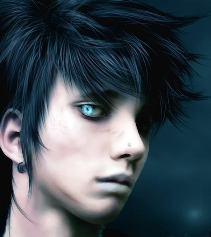 Skin: Dark Beige.Other Physical Details:Drefan’s body has only aged until around twenty-four years of age. But his eyes are much older, they are hard eyes, filled with regrets, destruction and dark power.Drefan has rough rope burns around his wrists. He has some knife marks on his chest and deep and jagged cutting scars on his arms from where he had used a piece of glass for many years.