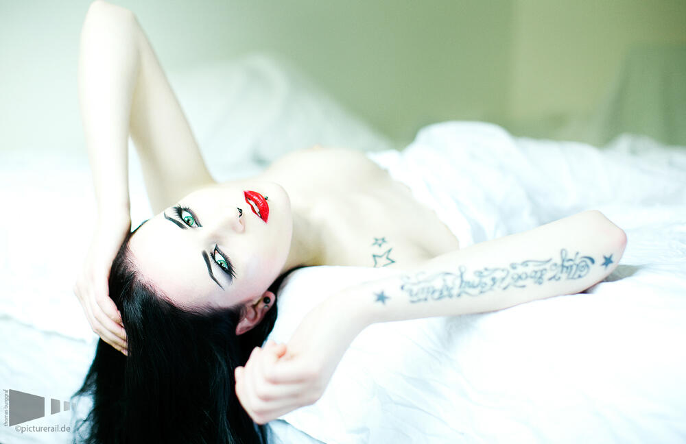 Skin: Ghostly white skin as though she left stage makeup on, but this is from head to toe.There is no natural pigmentation or discoloration, blemishes or freckles. It’s too smooth and perfect. Two years ago Mallie paid to have large portions of her skin surgically ‘replaced’ and tattooed from the roots of her hair to the tips of her toes the snow-white she shows the world.